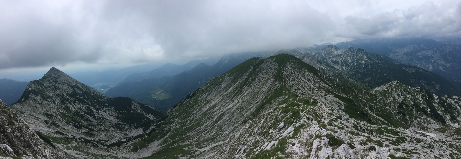 Jak jsme se blížili k vrcholu, tak se pořád víc a víc kazilo počasí. Když jsme konečně zdolali vrchol, tak špatné počasí také dosáhlo vrcholu a vrcholové výhledy nám kazila mlha. Na vrcholu fotíme vrcholovky, chvíli se kocháme mlhovitým výhledem a jdeme dolů, jelikož na hoře nebude úplně teplo.